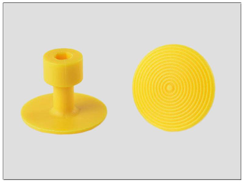 Die gelben Klebestopfen haben Eigenschaften von elastisch in Kombination mit hart, das führt zu einer mittelfesten Materialeigenschaft.